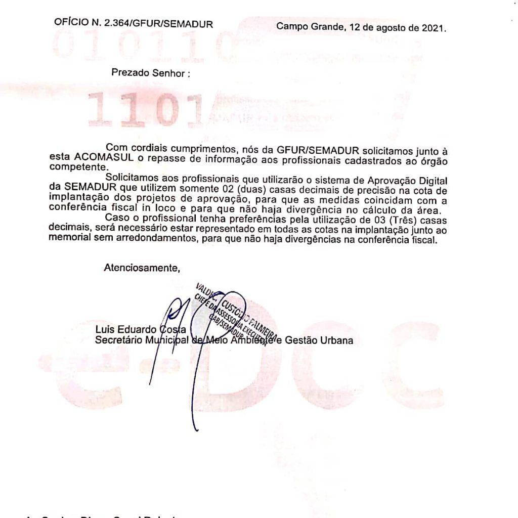 ATENÇÃO ASSOCIADOS ACOMASUL PARA ESTE IMPORTANTE OFÍCIO DA SEMADUR