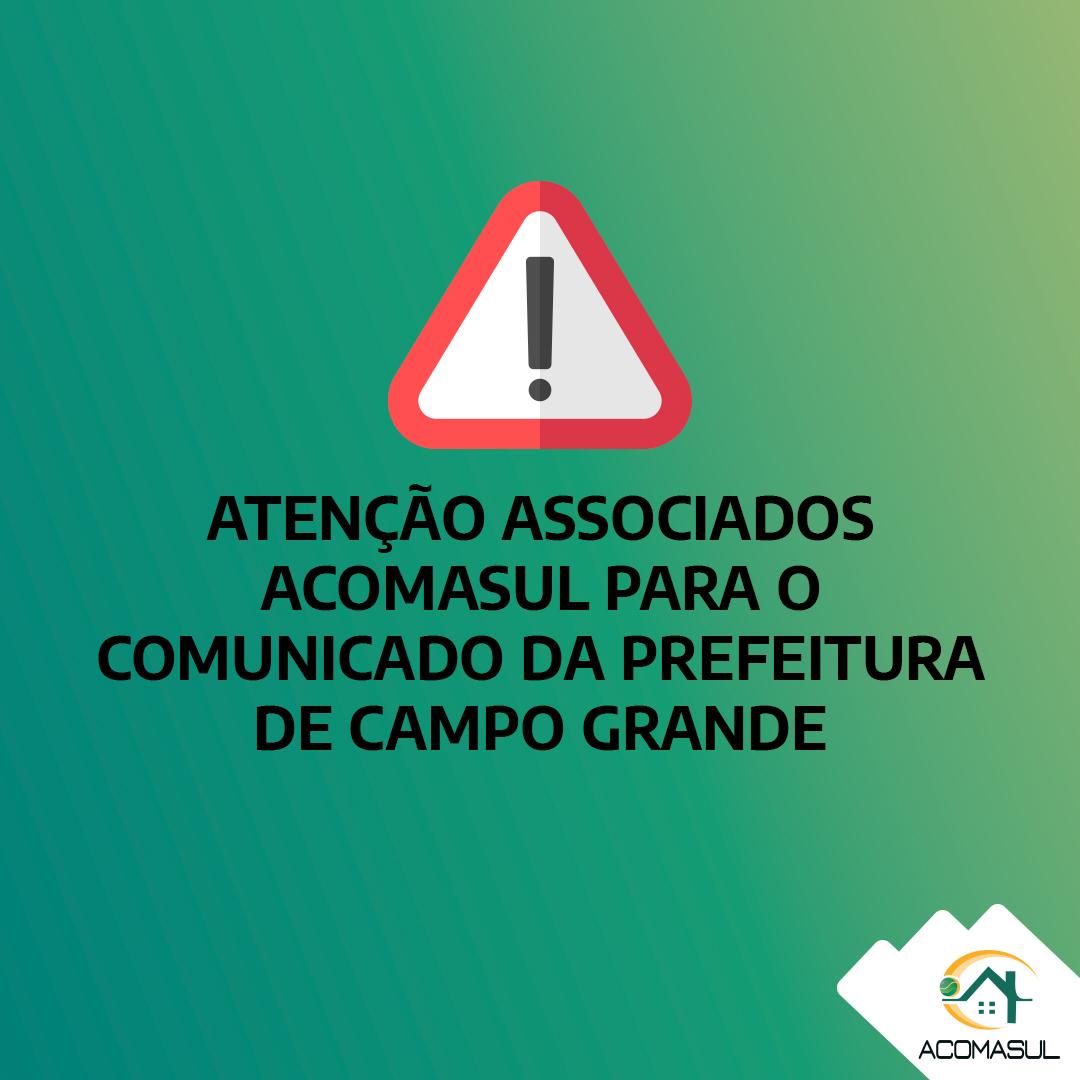 ATENÇÃO ASSOCIADOS ACOMASUL PARA O COMUNICADO DA PREFEITURA DE CAMPO GRANDE