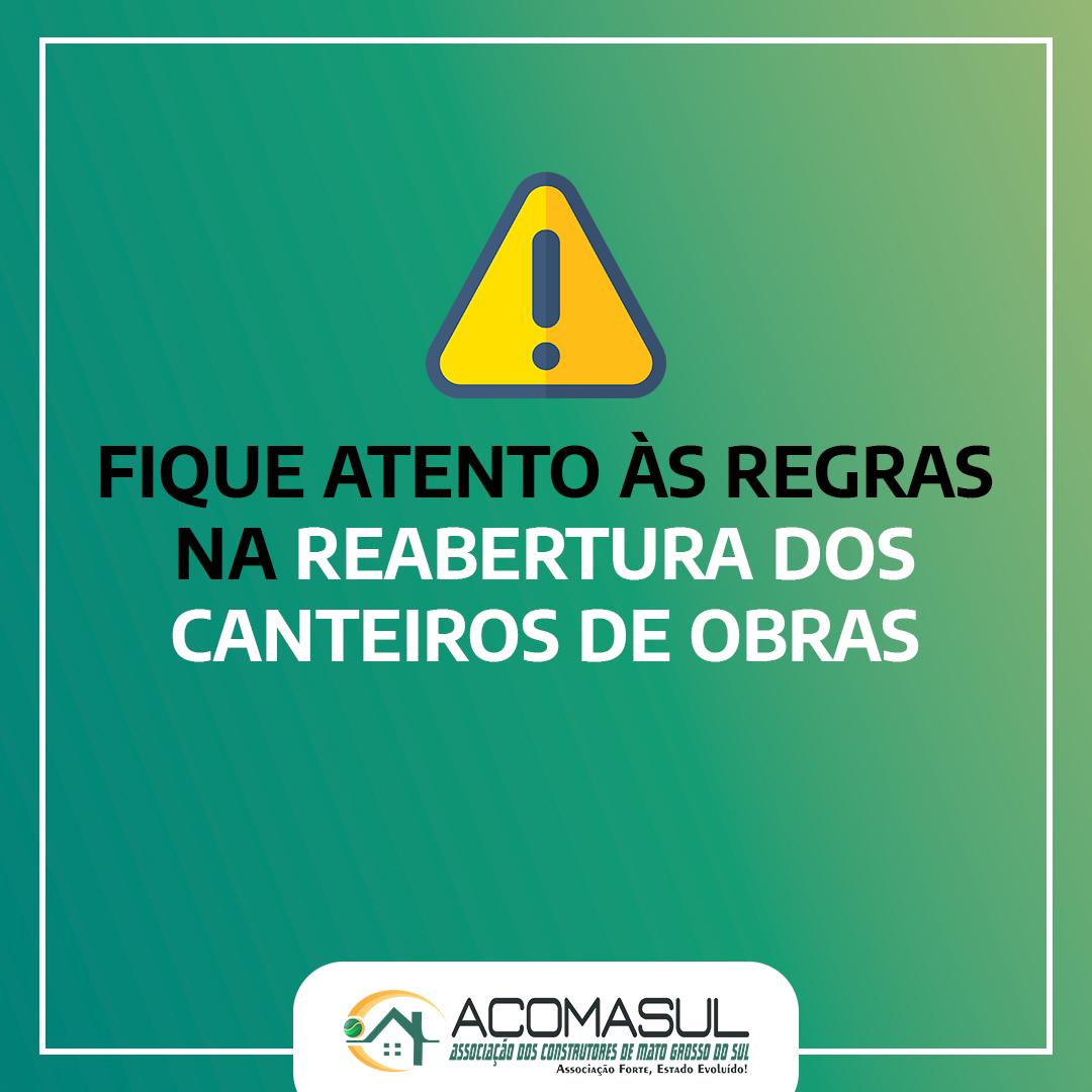 Nesta quinta-feira, (26), a prefeitura de Campo Grande publicou um decreto que permite o retorno às atividades nos canteiros de obras da capital a partir da próxima quinta-feira, (30). Porém é importante observarmos que o decreto traz uma série de medidas que devem ser obedecidas durante o trabalho na construção civil. São elas: