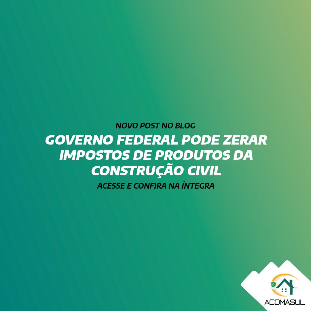 GOVERNO FEDERAL PODE ZERAR IMPOSTOS DE PRODUTOS DA CONSTRUÇÃO CIVIL