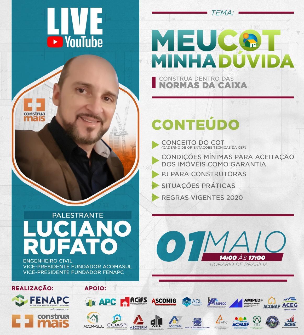 ⚠️ A FENAPC em parceria com algumas de suas Associadas (incluindo a ACOMASUL), promoverá nesta sexta-feira uma Live no YouTube com o tema Meu COT minha Dúvida que será ministrada pelo Engenheiro Luciano Rufato. 📝