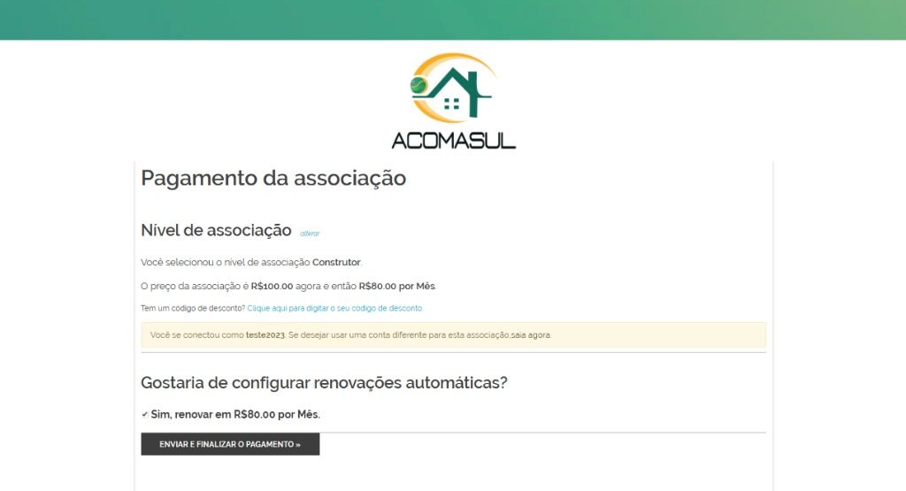 Pronto, só aguardar, que a próxima mensalidade será debitada do seu cartão todo dia 15 de cada mês.