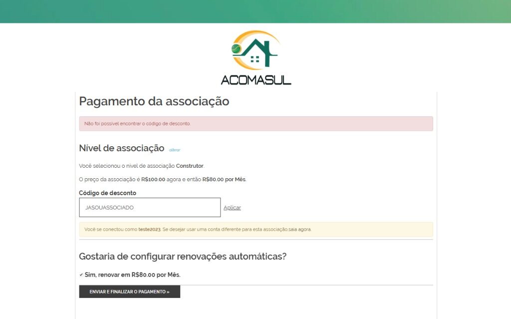 Selecione a opção – Clique aqui para digitar o seu código de desconto.
