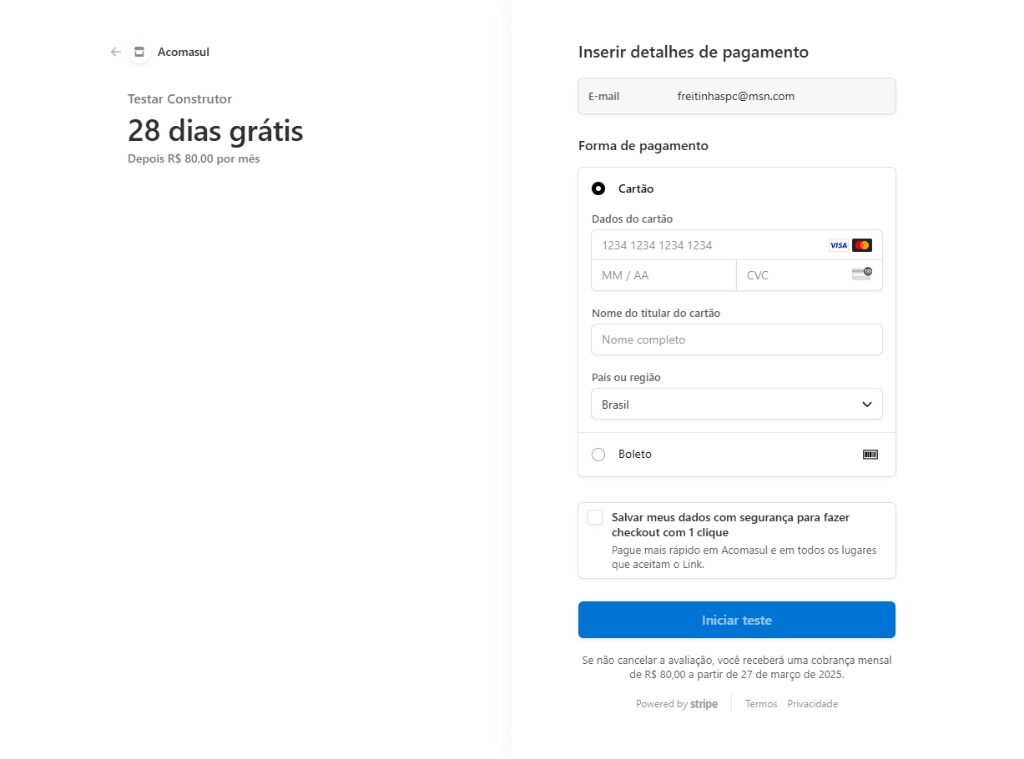 Você será redirecionado para o site da Stripe.
