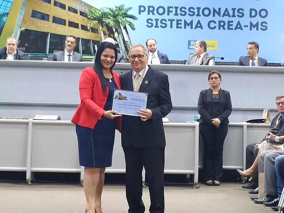 O presidente da Acomasul, Adão Castilho, recebeu a Medalha Legislativa “Euclydes de Oliveira” em Sessão Solene na Câmara Municipal nesta segunda-feira à noite (25). A outorga da Medalha foi em reconhecimento aos profissionais do CREA-MS que contribuem para o desenvolvimento de Campo Grande. A solenidade foi proposta pelo vereador João César Mattogrosso. Adão Castilho recebeu a Medalha das mãos da vereadora Dharleng Campos.