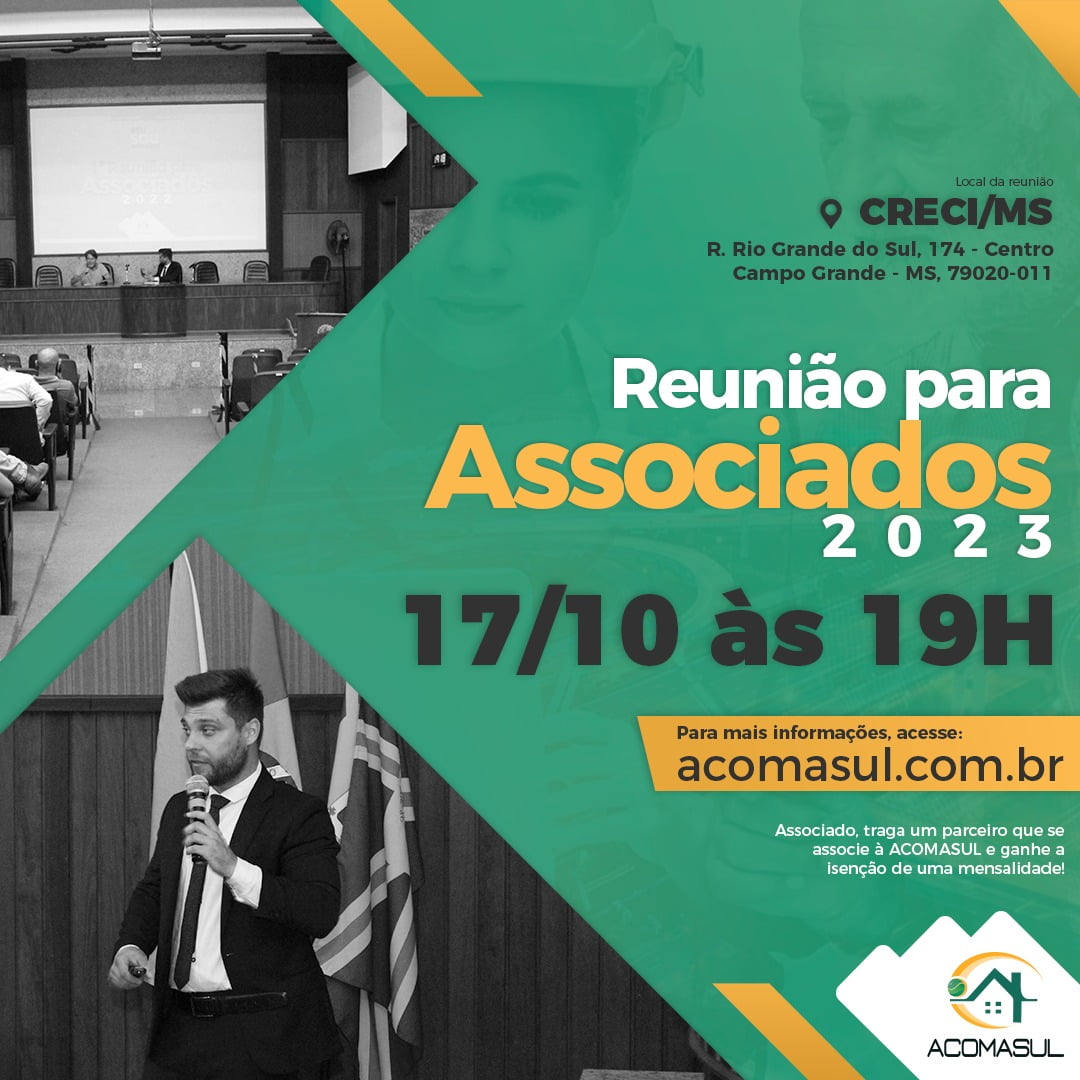 Será realizada no dia 17 de outubro às 19h no Auditório do CRECI-MS.
