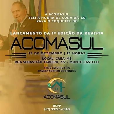 A Associação dos Construtores de Mato Grosso do Sul (ACOMASUL) lança nesta quinta-feira, (19), a primeira revista voltada para o segmento dos pequenos empresários da construção civil de Mato Grosso do Sul. O coquetel de lançamento será a partir das 19h no auditório do Conselho Regional de Engenharia e Agronomia ((CREA)  em Campo Grande.